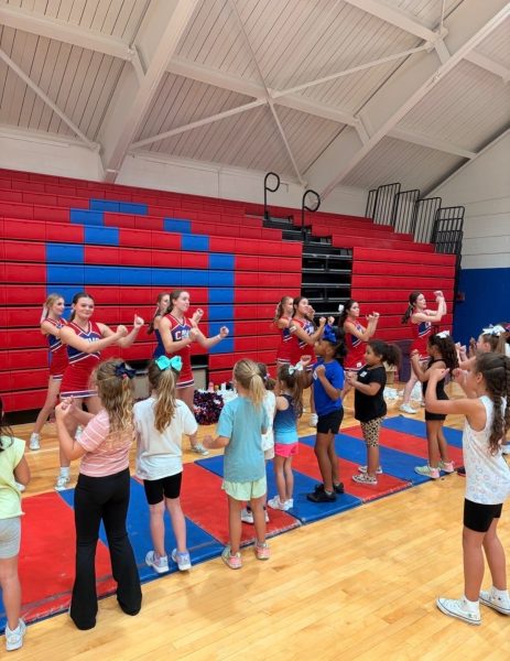 “It was a fundraiser that we used to get materials and resources for the cheer team, and we taught the kids some cheers and cheer techniques, and we put them up in stunts,” sophomore Arielle Goelz, a second-year cheerleader, explained. “It was just a way to get them to want to do cheer in the future.”